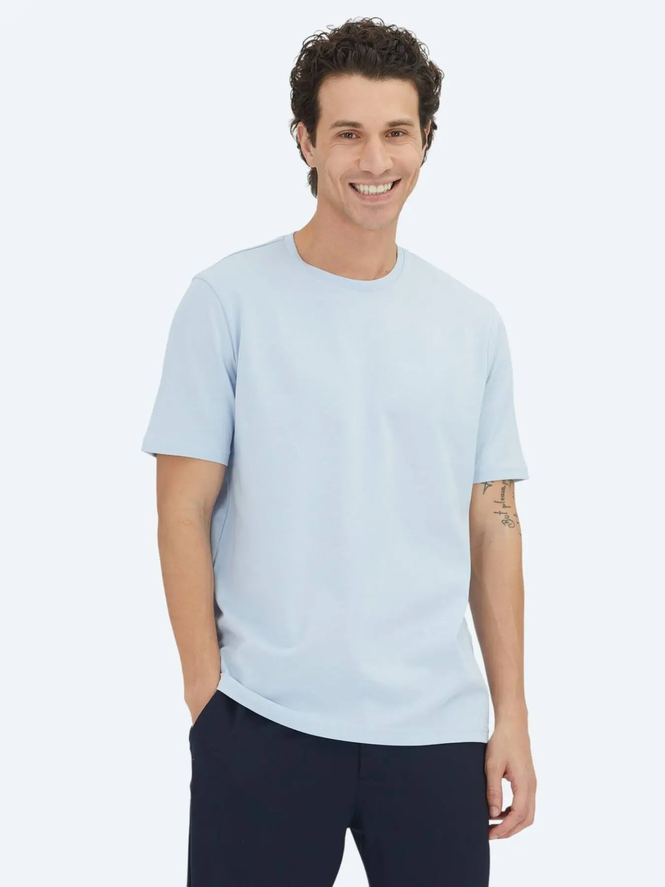 Unisex Orta Mavi Düz Bisiklet Yaka %100 Pamuk T-Shirt - 1