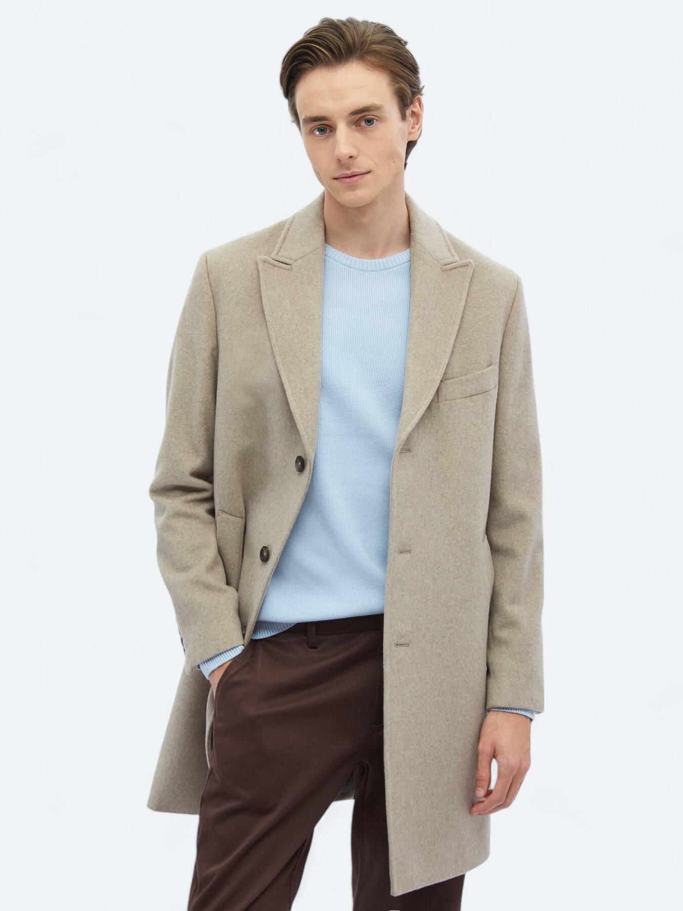 Vizon Regular Fit Kruvaze Yaka Klasik Dokuma Palto