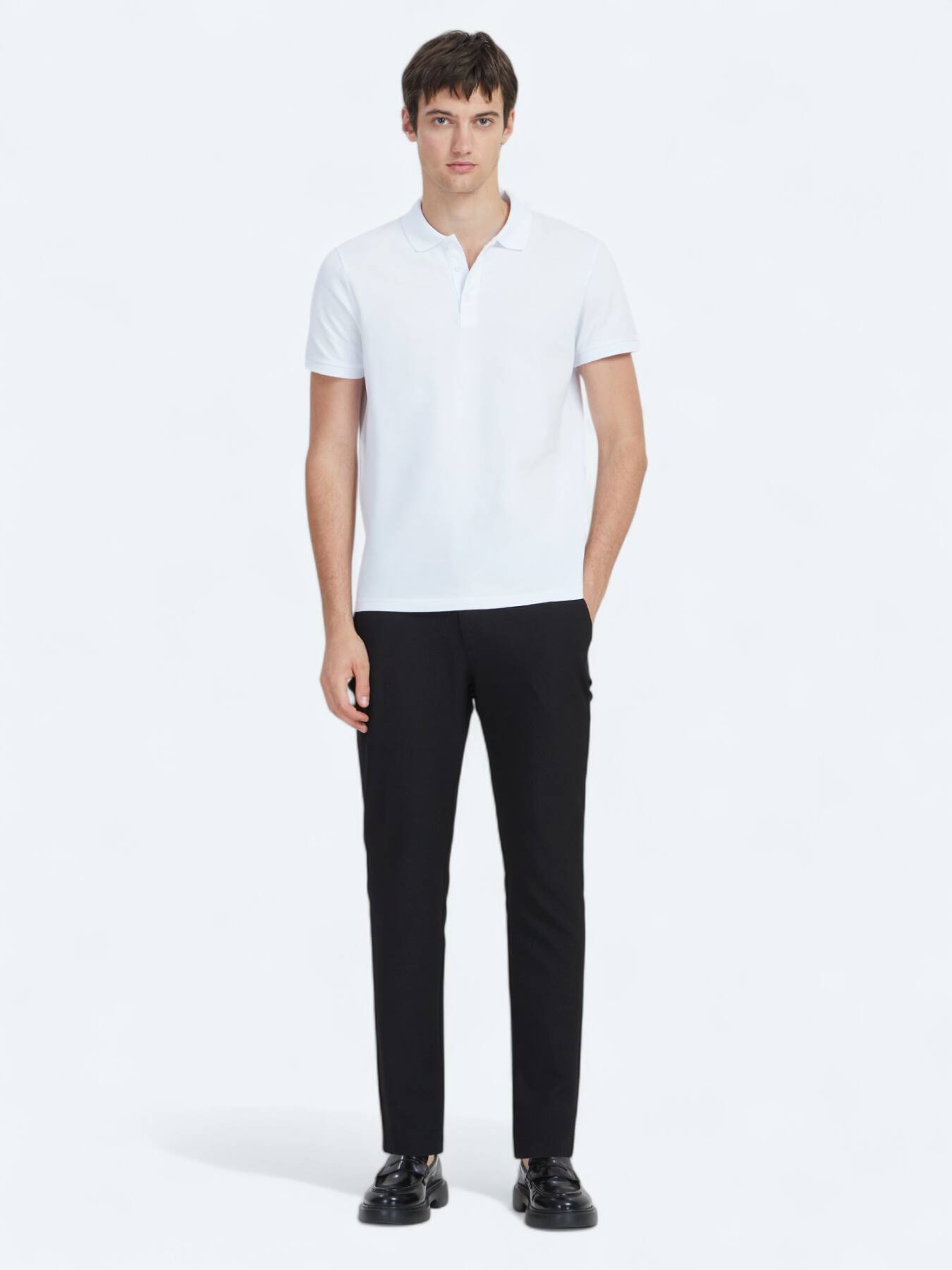 This white polo shirt, which draws attention with its clean and simple line, is one of the most functional pieces of the wardrobe.