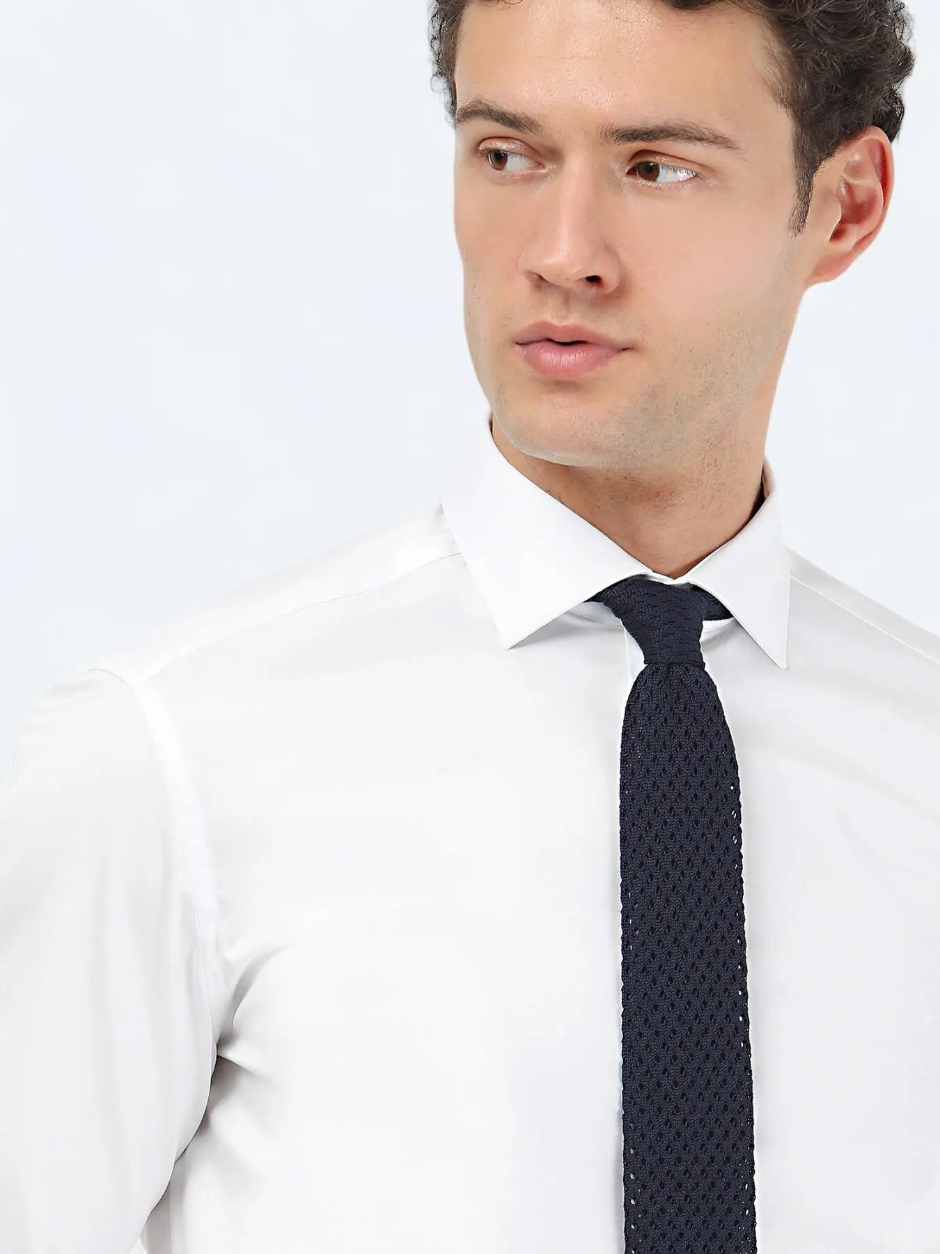 White Plain Regular Fit Weaving Classical 100% Cotton Shirt