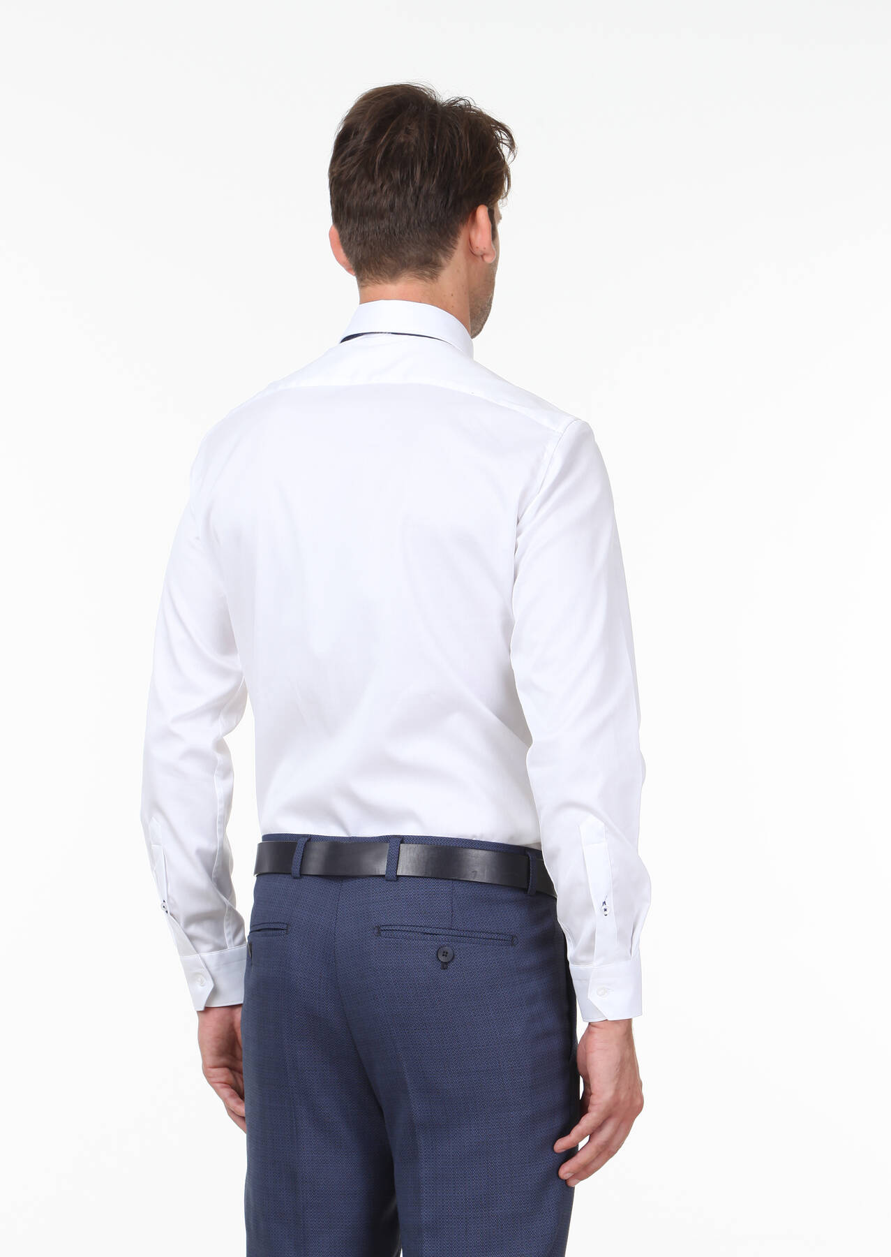 White Plain Slim Fit Weaving Classical 100% Cotton Shirt