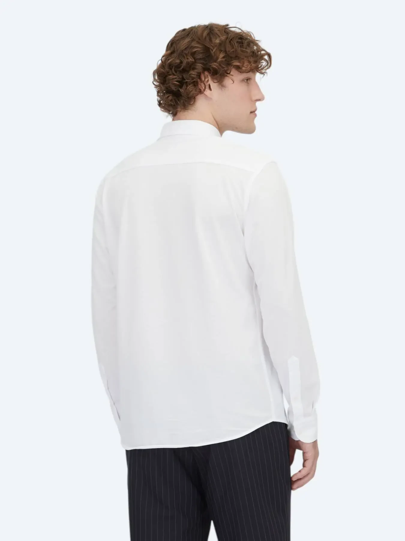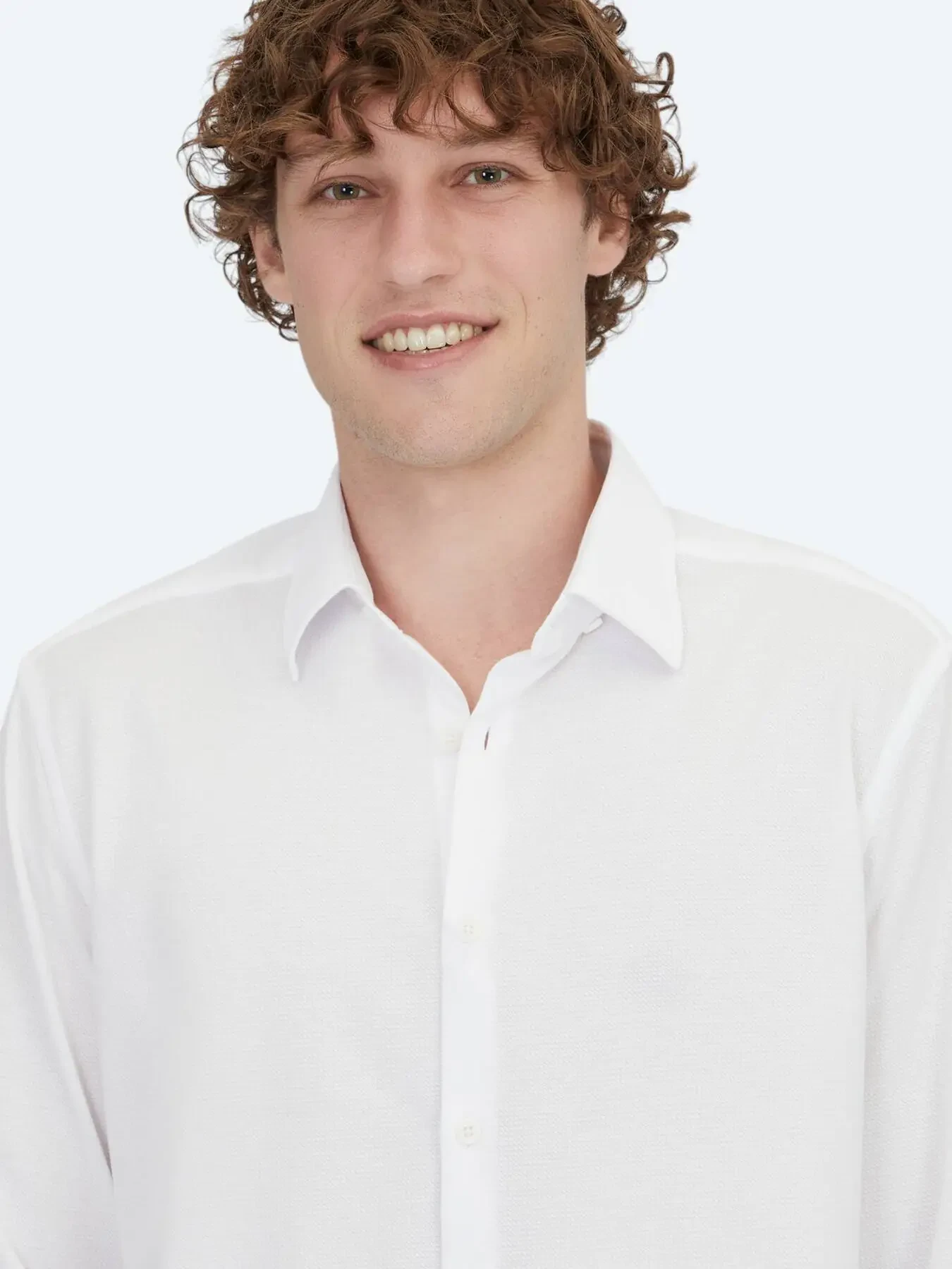 White Striped Regular Fit Knitting Casual Cotton Blended Shirt