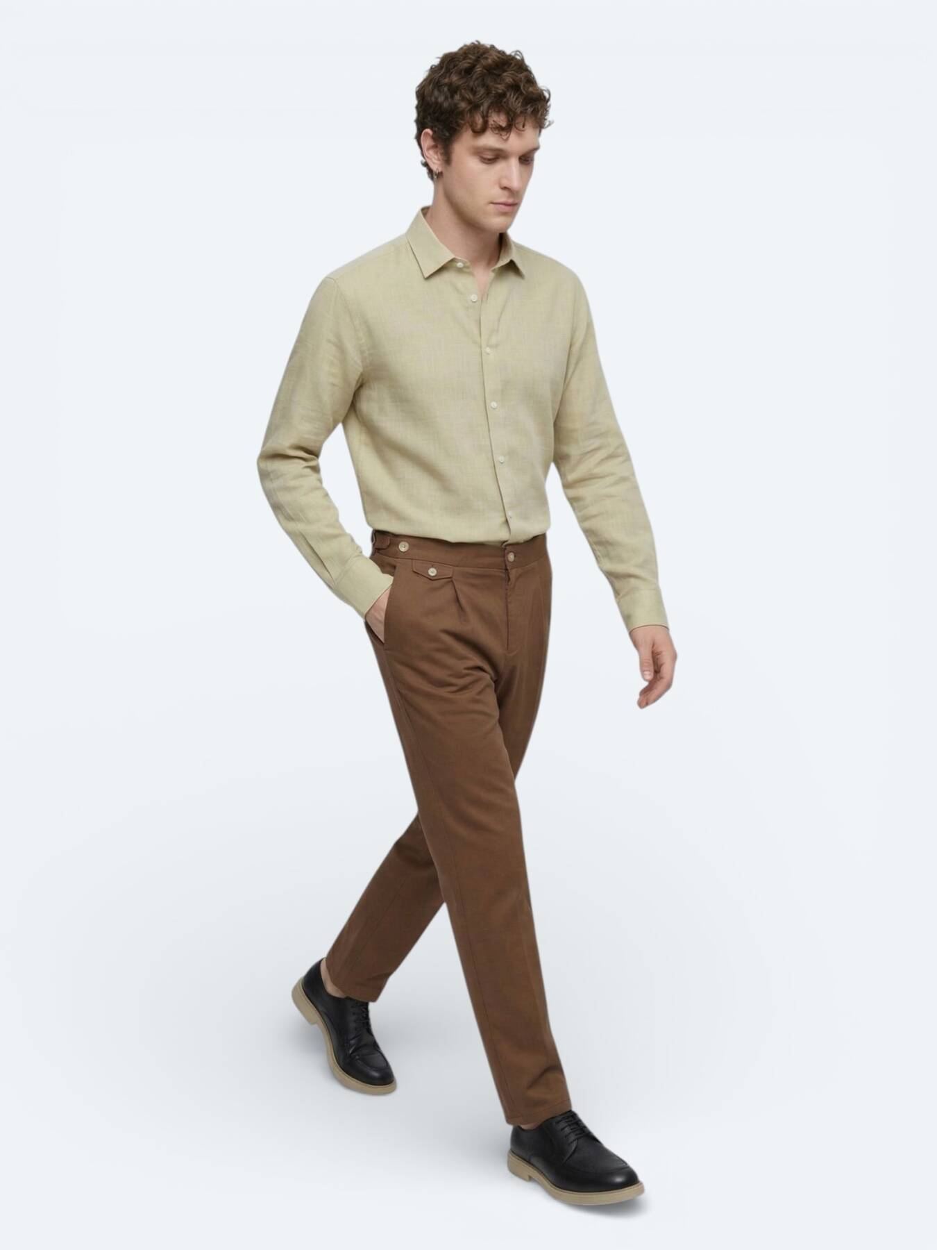 Yağ Yeşili Düz Regular Fit Dokuma Casual %100 Pamuk Gömlek