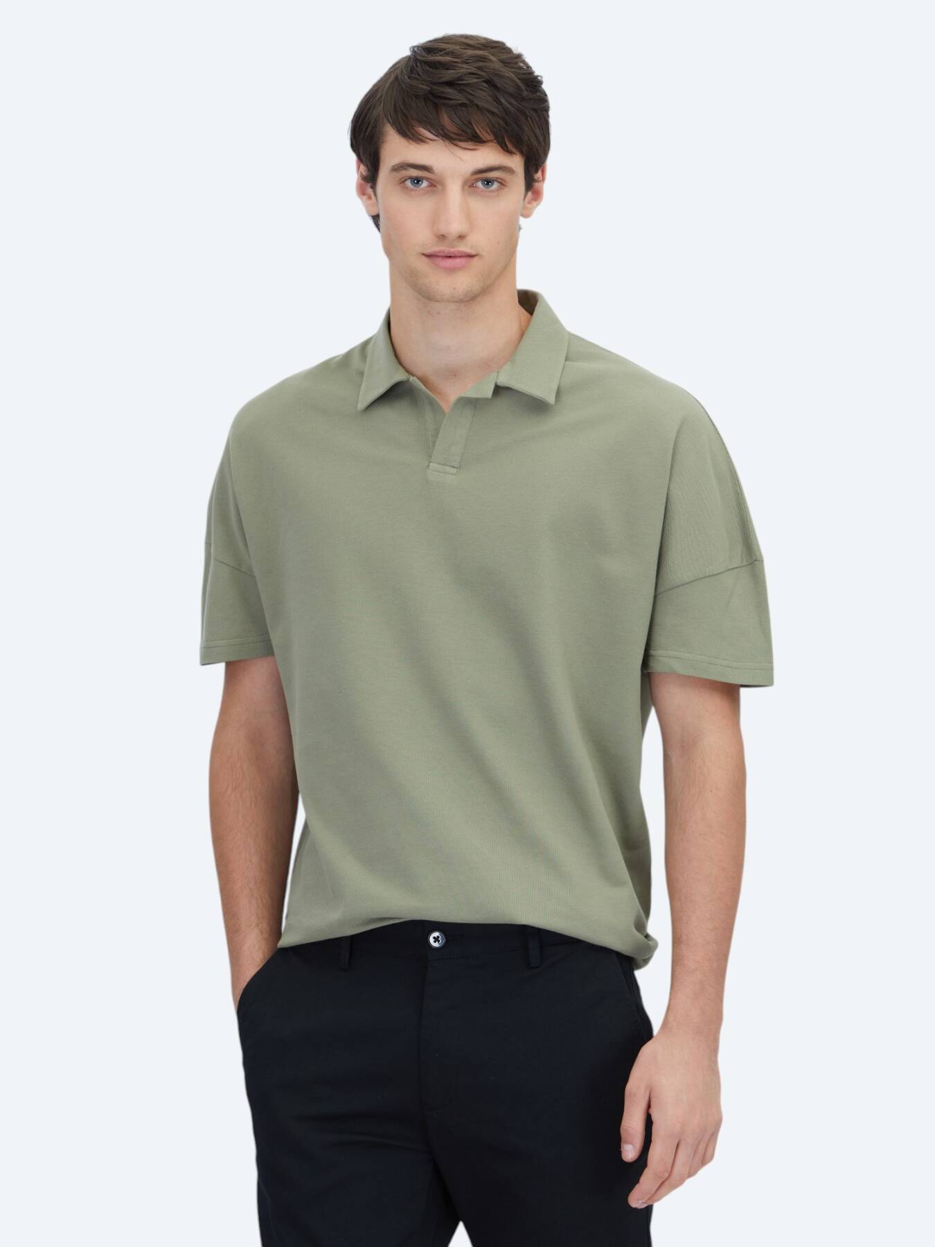 Doğal dokusuyla dikkat çeken bu yeşil tişört, ister jean ister dokuma pantolonlarla kolayca eşleşebilir.