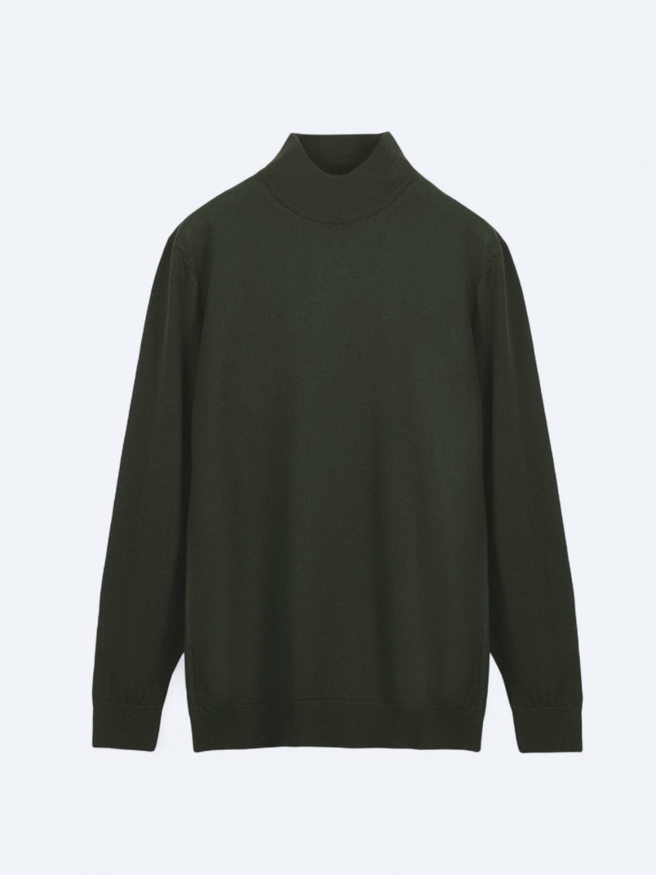 Yeşil Yarım Balıkçı Yaka Düz Örgü Yün Karışımlı Triko Kazak - 1